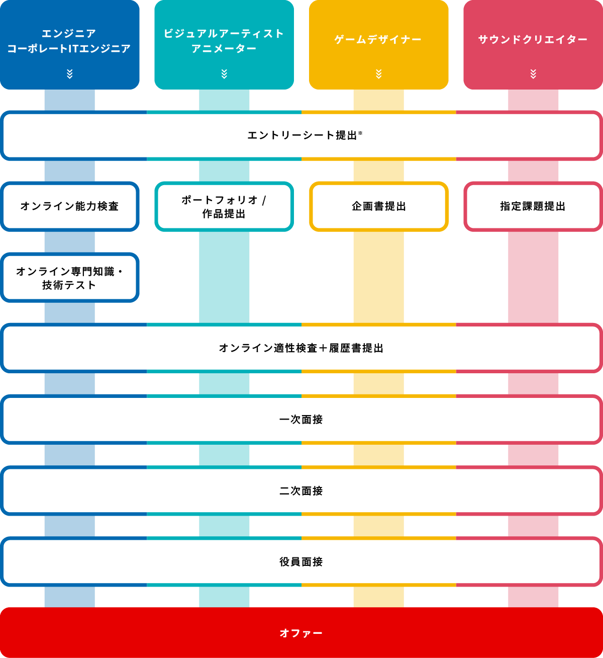 提出期限は職種ごとに異なる場合がございますので各職種エントリーページの内容をご確認ください。